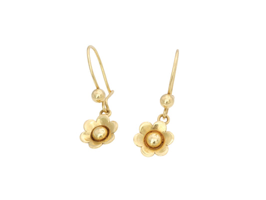 Vintage 9ct Yellow Gold Flower Drop Earrings, 1977