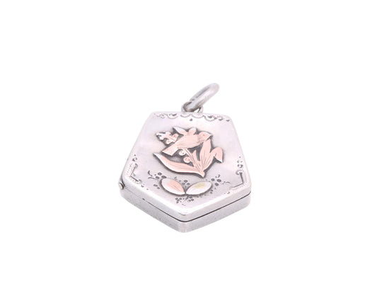 Antique Sterling Silver Locket With A Swallow In Reeds