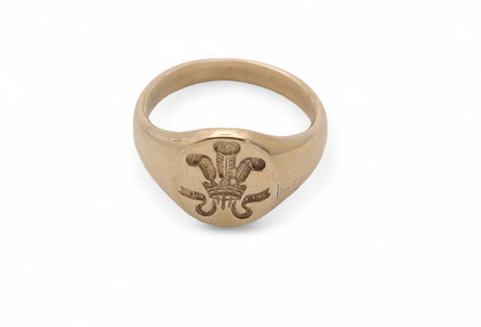 Vintage 9ct Gold Prince Of Wales Feathers Crest Signet Ring