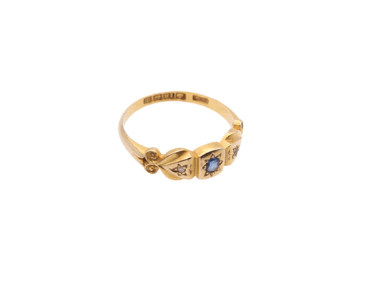 Antique Victorian 18ct Gold, Diamond & Sapphire Gypsy Ring - 1886