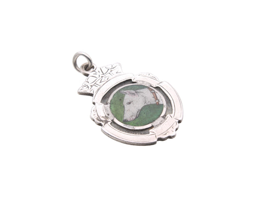 Antique Art Deco Sterling Silver Porcelain Painted Dog Pendant Fob