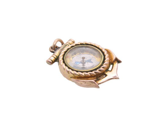 Antique 9ct Gold Ships Anchor Compass Pendant