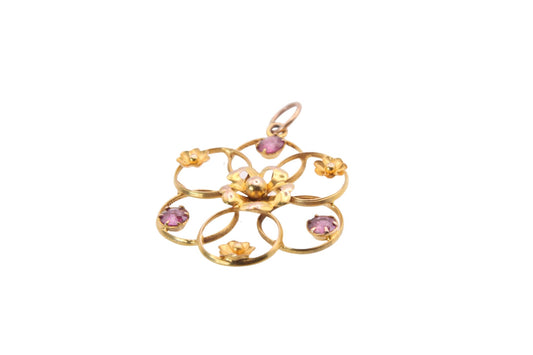 Antique 15ct Gold Amethyst Triple Crested Spinner Pendant