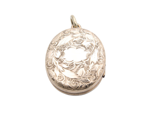 Antique 9ct Gold Back & Front Decorative Oval Swallow Locket