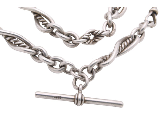 Antique Silver Fancy Twisted Trombone Link Watch Chain, 81g