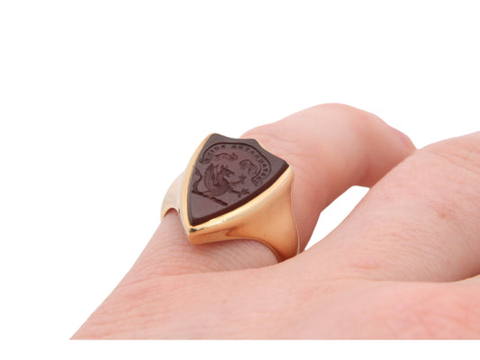 Antique 18ct Gold Carnelian Intaglio Shield Griffin Signet Ring