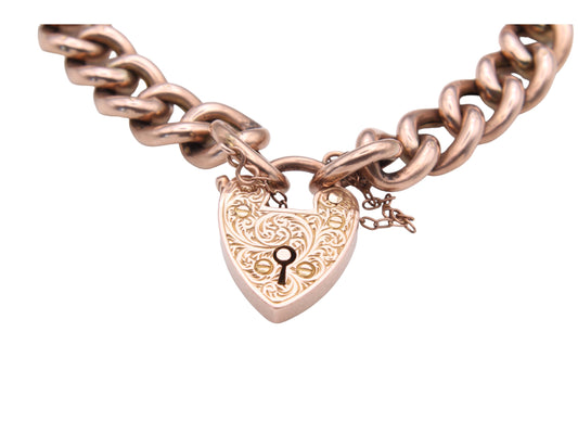 Antique 9ct Gold Curb Link Bracelet & Dog Clip