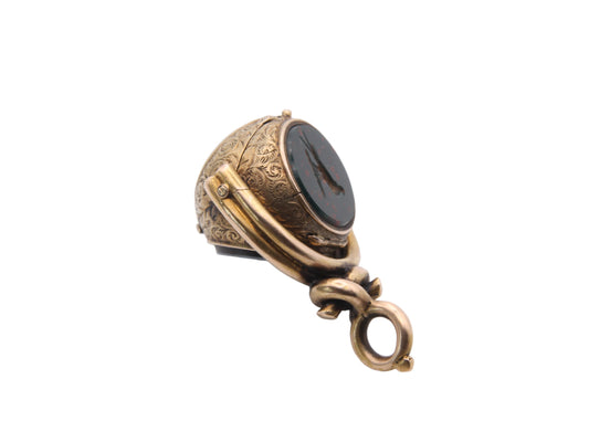 Antique 9ct Gold Hidden Locket Intaglio Bloodstone & Lilac Spinner Pendant