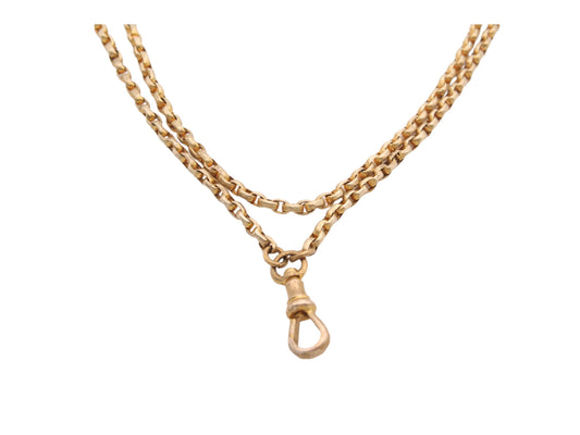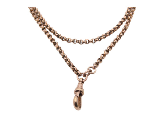Antique Victorian 9ct Rolled Rose Gold Long Guard Necklace 54"