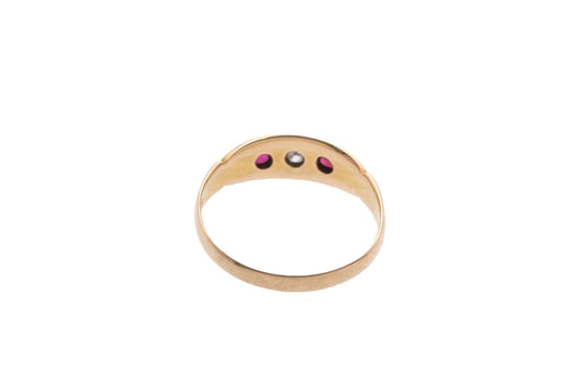 Antique Victorian 18ct Gold, Diamond & Ruby Gypsy Ring - 1897
