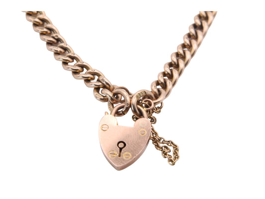 Antique 9ct Rose Gold Graduated Curb Link Padlock Bracelet 20g