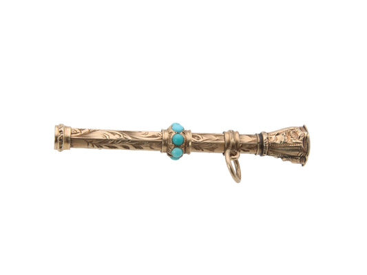 Antique 9ct Gold Small Pencil With Turquoise & Citrine Pendant