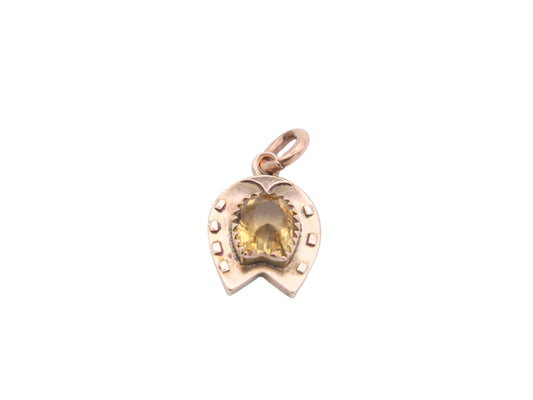 Antique 9ct Gold Lucky Horseshoe Citrine Pendant Charm, 1893