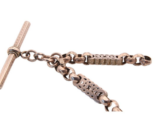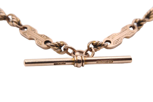 Antique 9ct Rose Gold Fancy Link Watch Chain Necklace - 16.5"