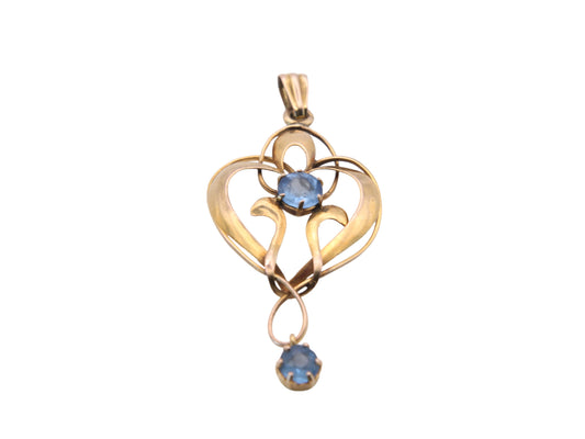 Antique Edwardian 9ct Gold & Blue Paste Pendant