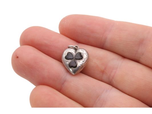 Antique Sterling Silver Heart Shamrock Bloodstone Pendant