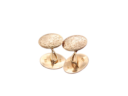 Antique Edwardian 15ct Gold Oval Cufflinks, 1909