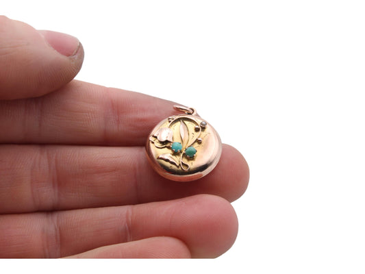 Antique 9ct Gold Turquoise Lily Of The Valley Flower Locket Pendant