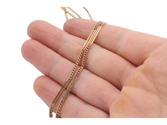 Antique 9ct Rolled Rose Gold Fancy Link Long Guard Necklace 46"