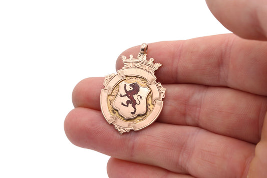 Antique 9ct Gold Enamelled Lion Pendant Fob 1915