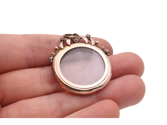 Antique 9ct Gold Decorative Glass Locket Pendant