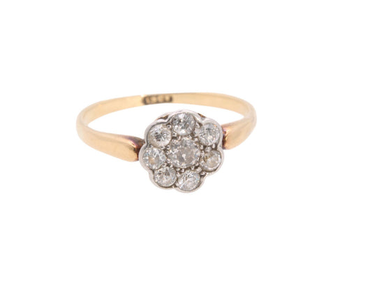 Antique 18ct Gold & Platinum Diamond Cluster Daisy Ring, 0.42ct