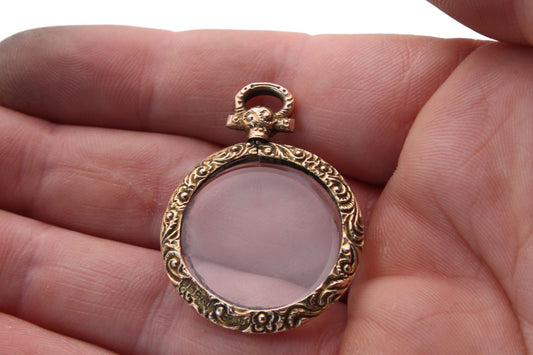 Antique Edwardian Chased 9ct Gold Glass Photo Pendant