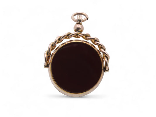 Antique 9ct Gold Bloodstone Carnelian Spinner Pendant, 1892