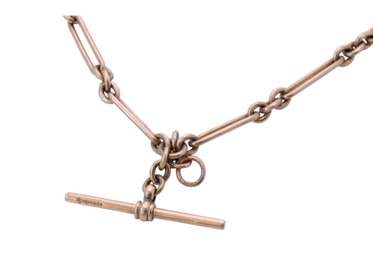 Antique 9ct Gold Trombone Link Albert Chain Necklace, 14.5"