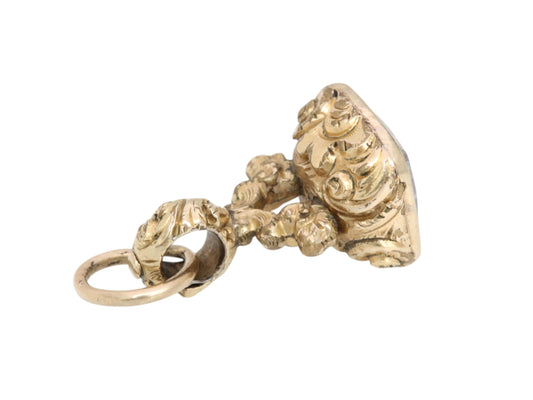 Antique 9ct Gold Filled Intaglio Rose, Thistle, Acorn Seal Pendant