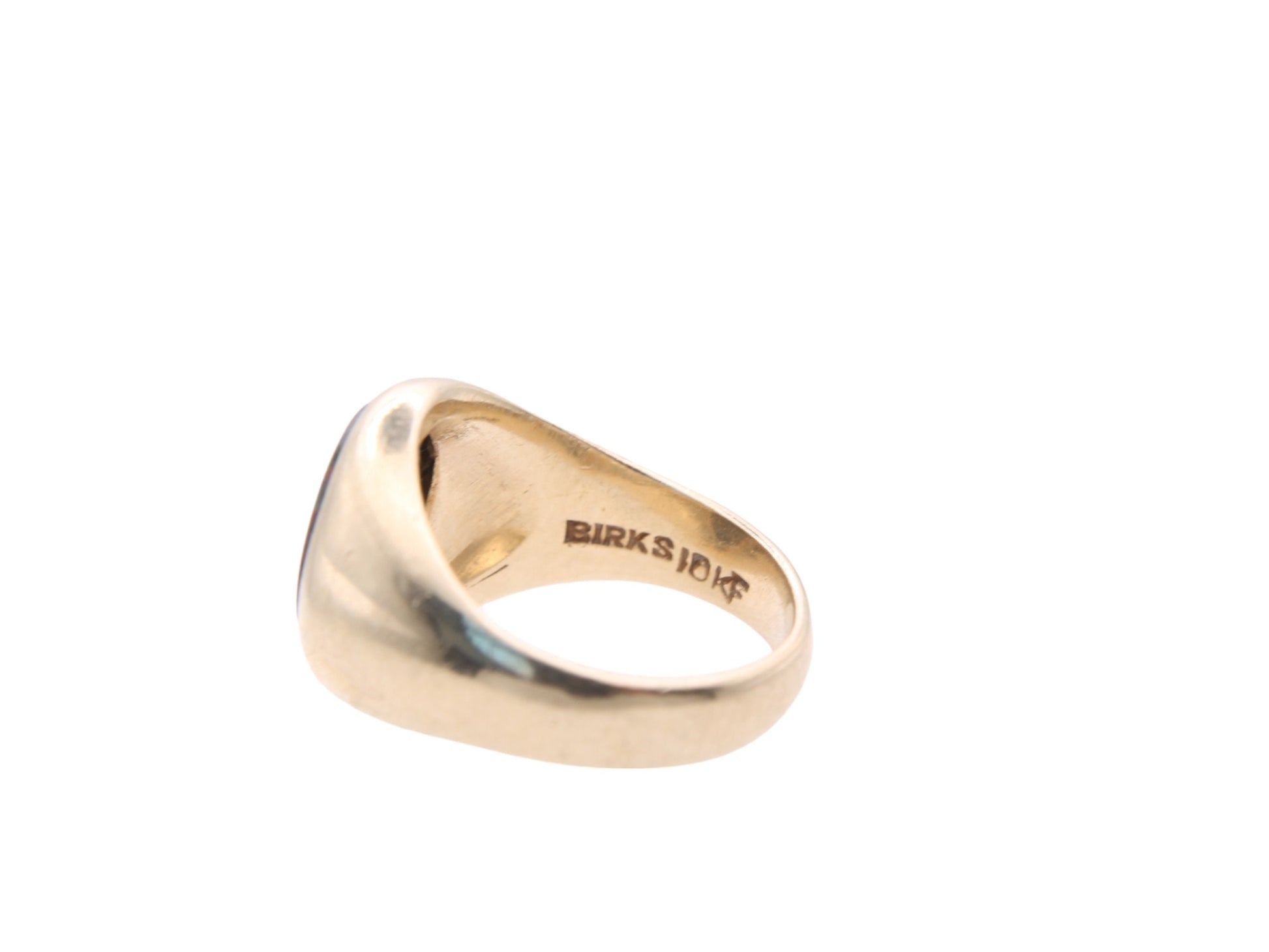 A divine 10ct gold antique signet ring with an exceptional intaglio crest of a wild boar. It is made by the well known BIRKS, a canadian jewellery company.