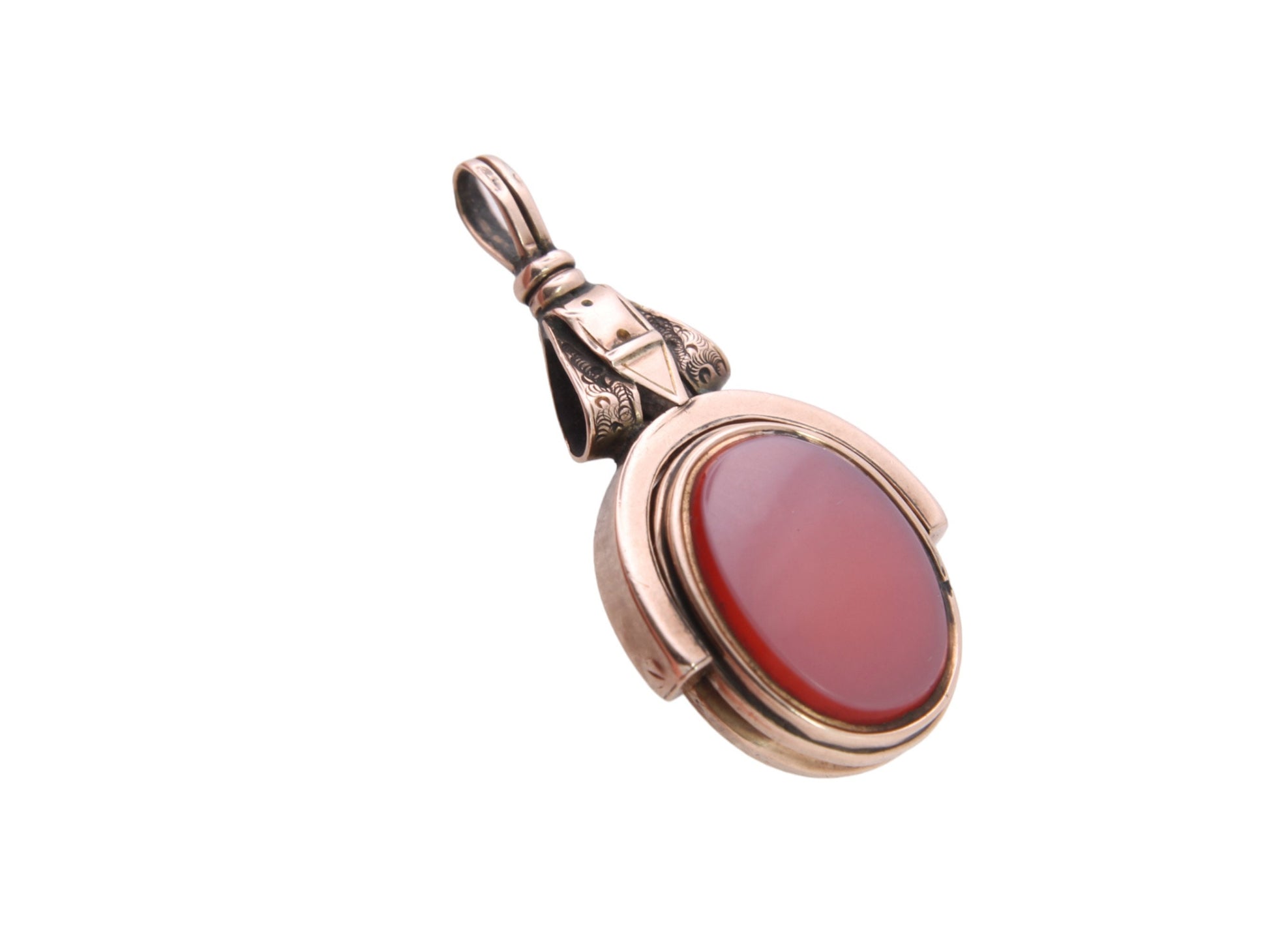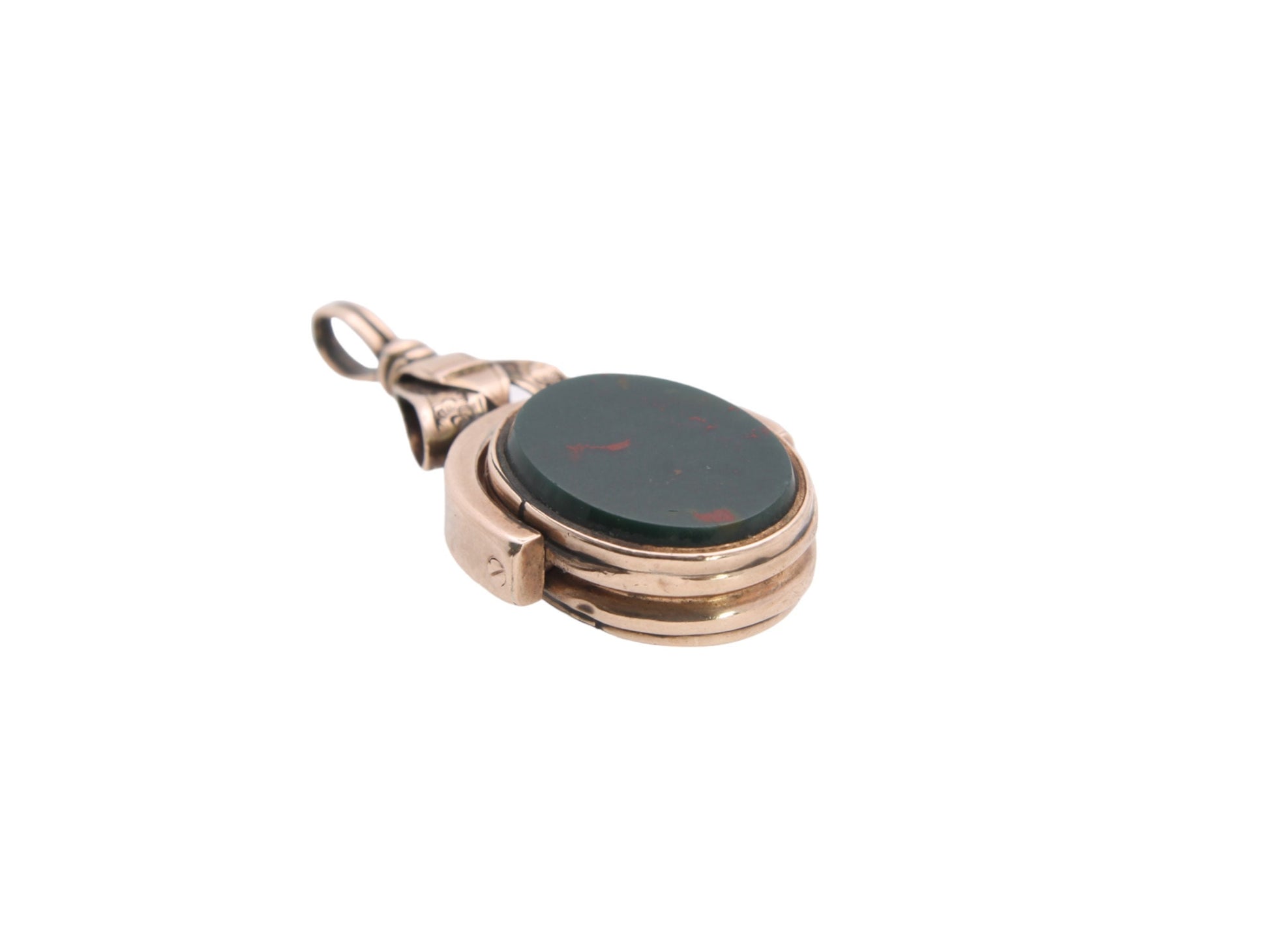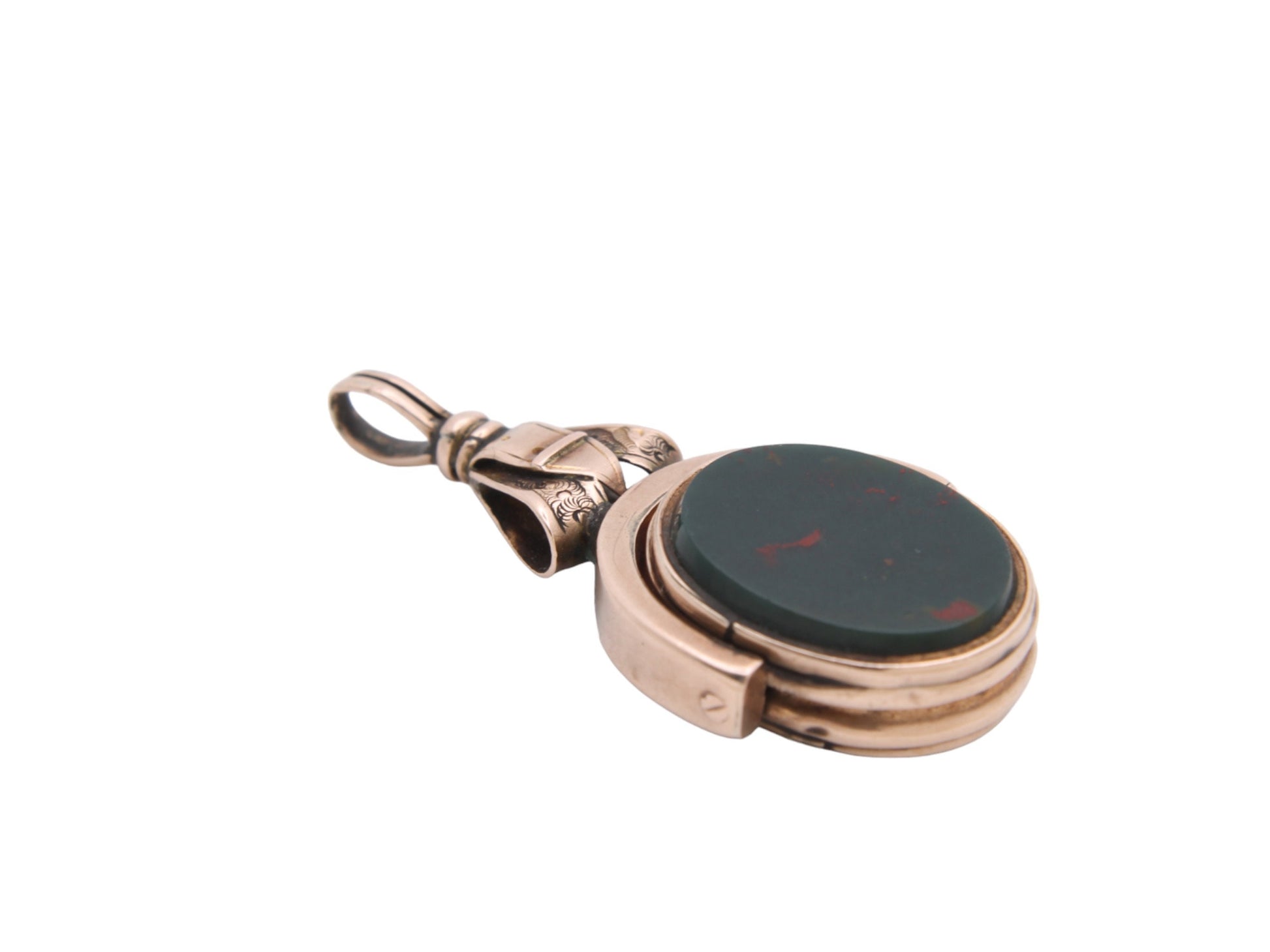 Antique 10ct Gold Bloodstone & Lilac Carnelian Buckle Spinner Pendant