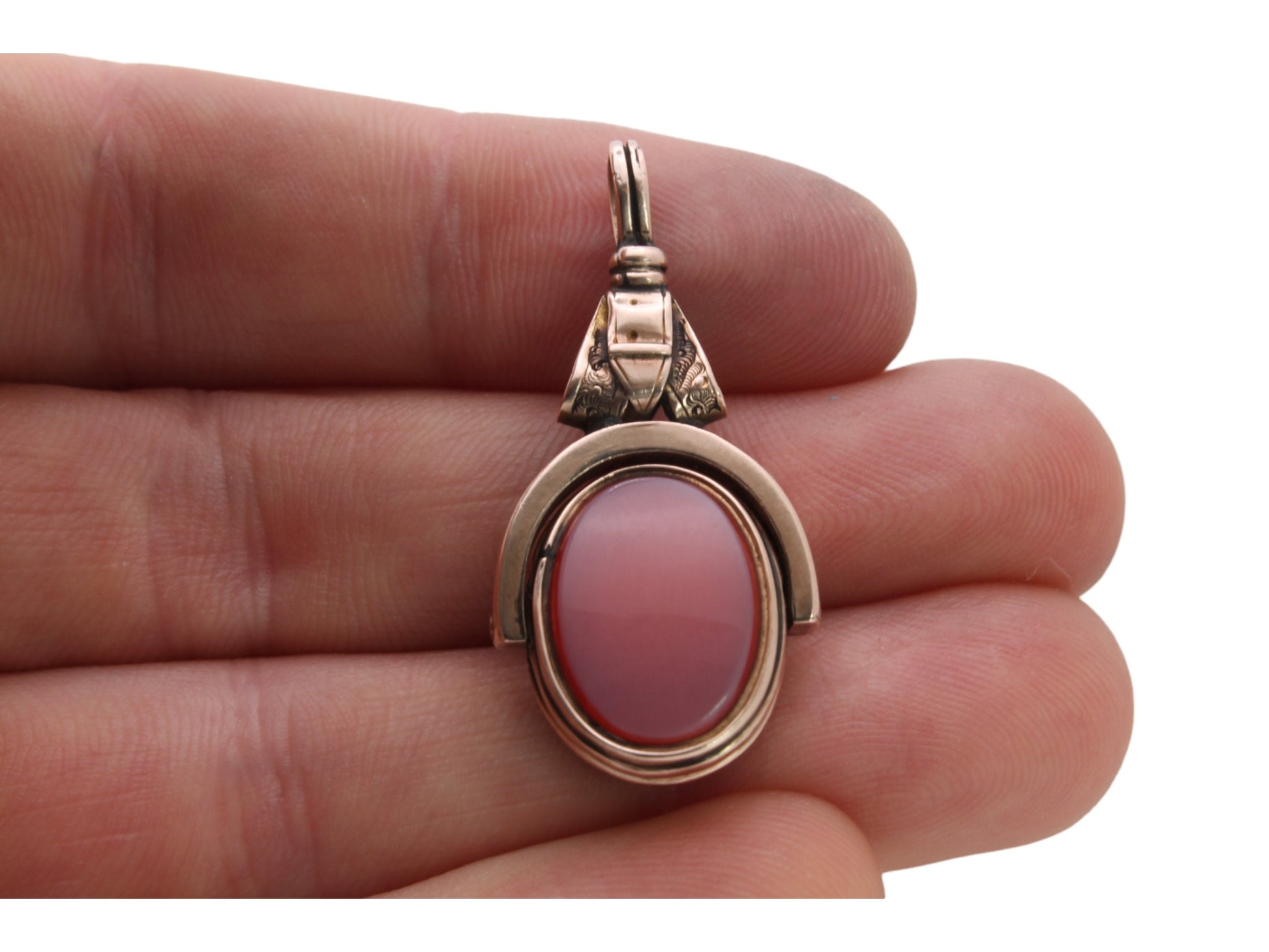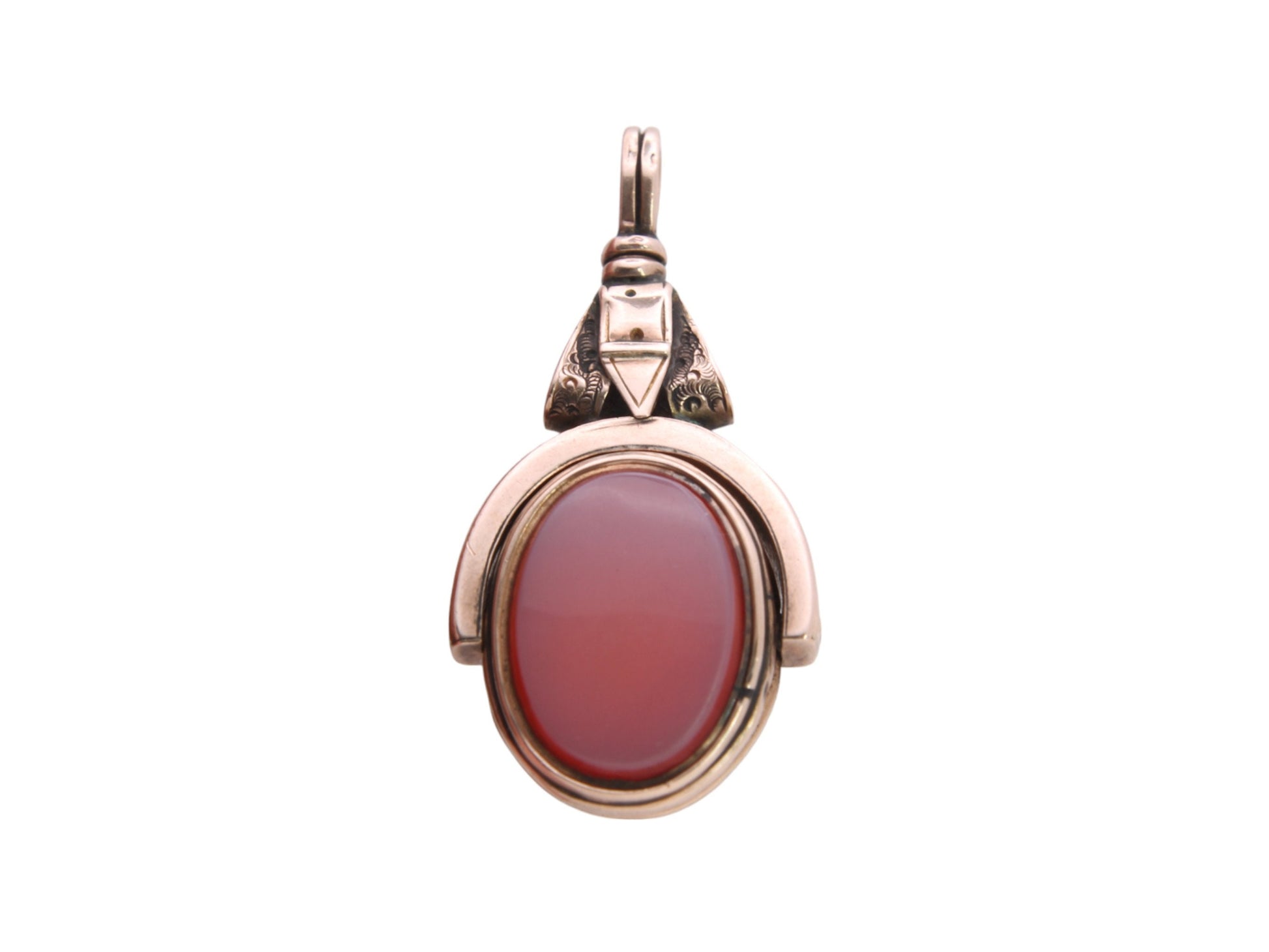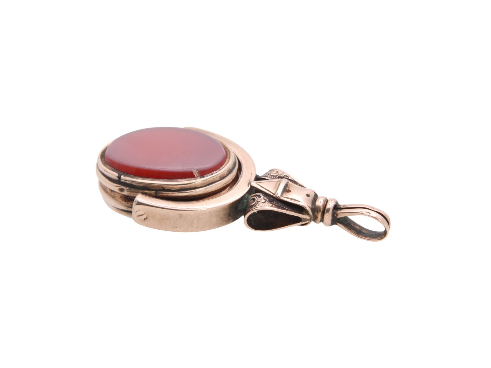 Antique 10ct Gold Bloodstone & Lilac Carnelian Buckle Spinner Pendant
