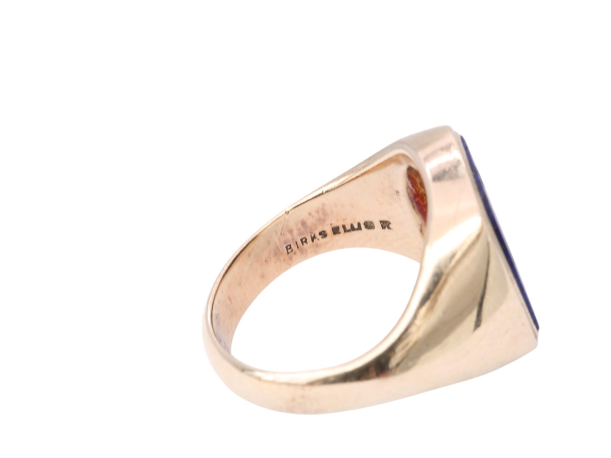 Antique 14ct Gold Lapis Lazuli Lion Intaglio Signet Ring - Birks c.1910