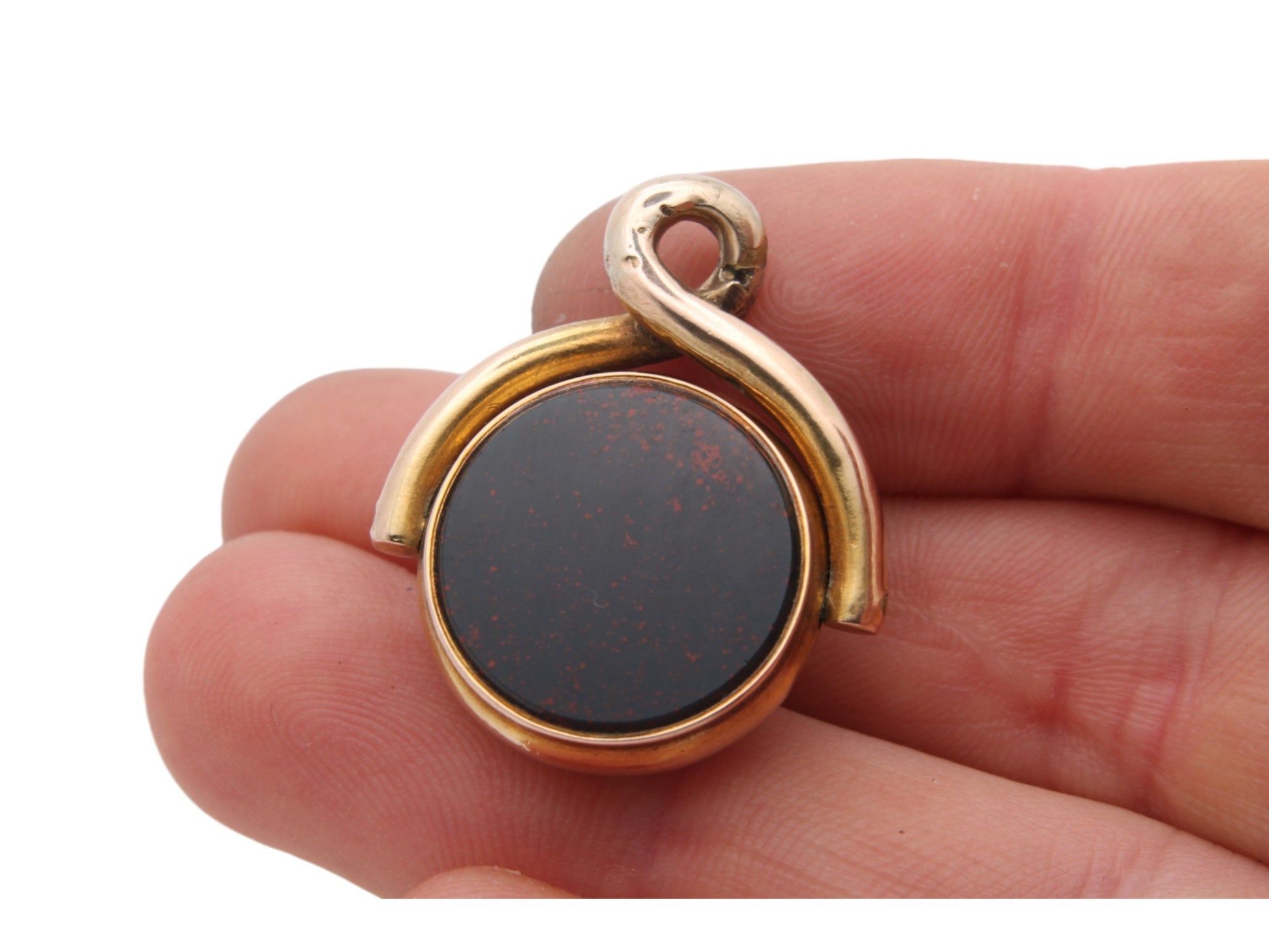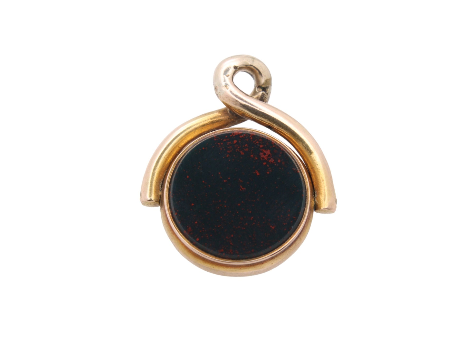 Antique 15ct Gold Bloodstone & Lilac Agate Spinner Pendant Fob