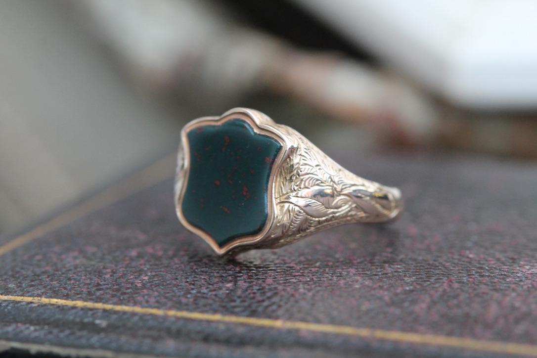 Antique 15ct Gold Bloodstone Shield Signet Ring, 1913