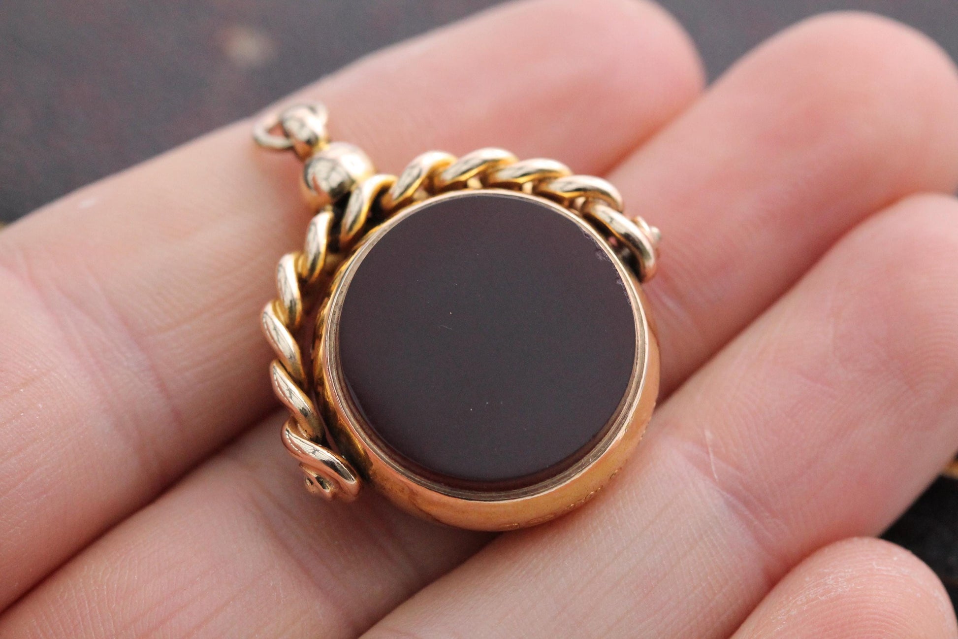 Antique 15ct Gold Bloodstone Spinner Pendant, 1887