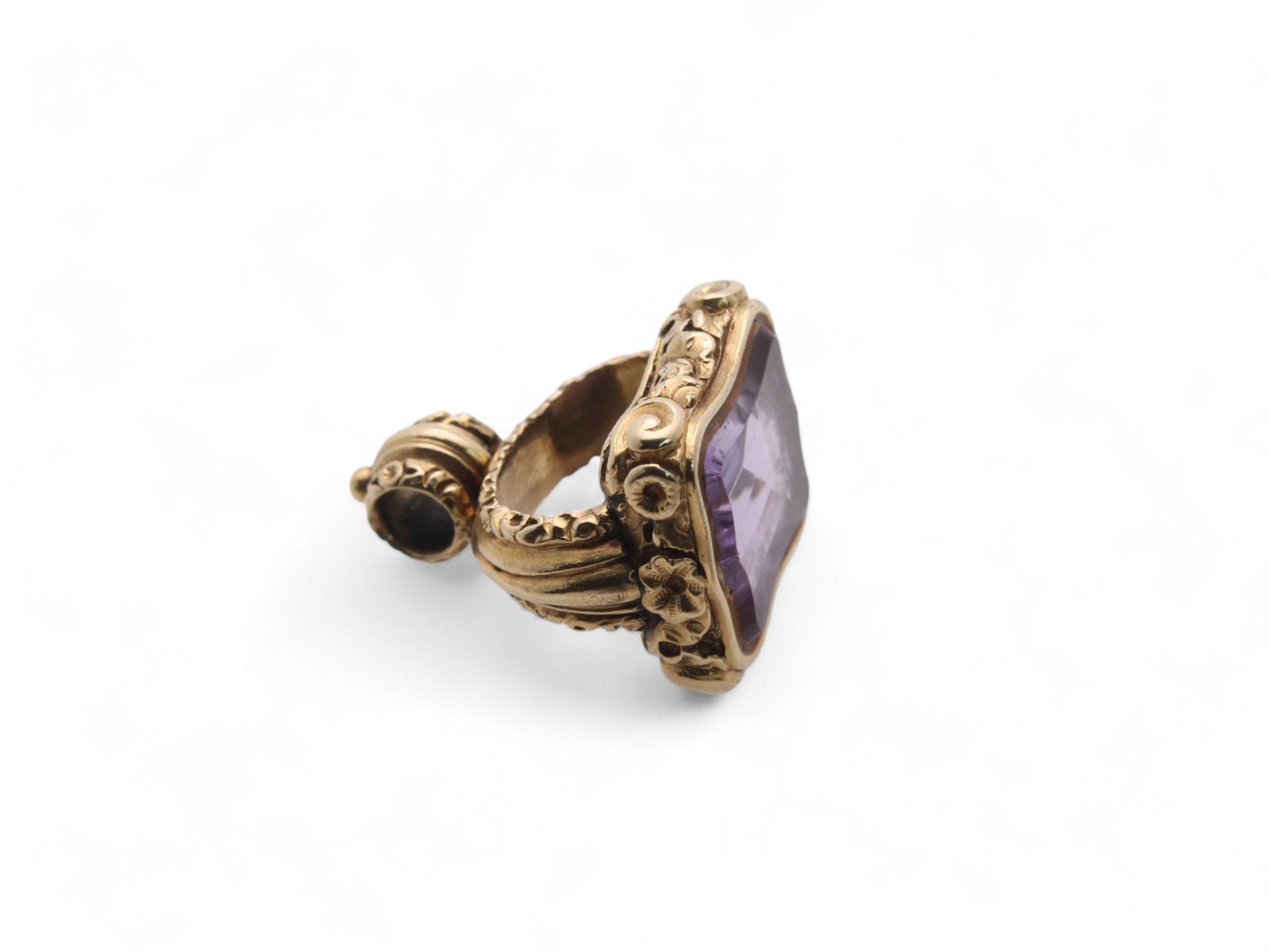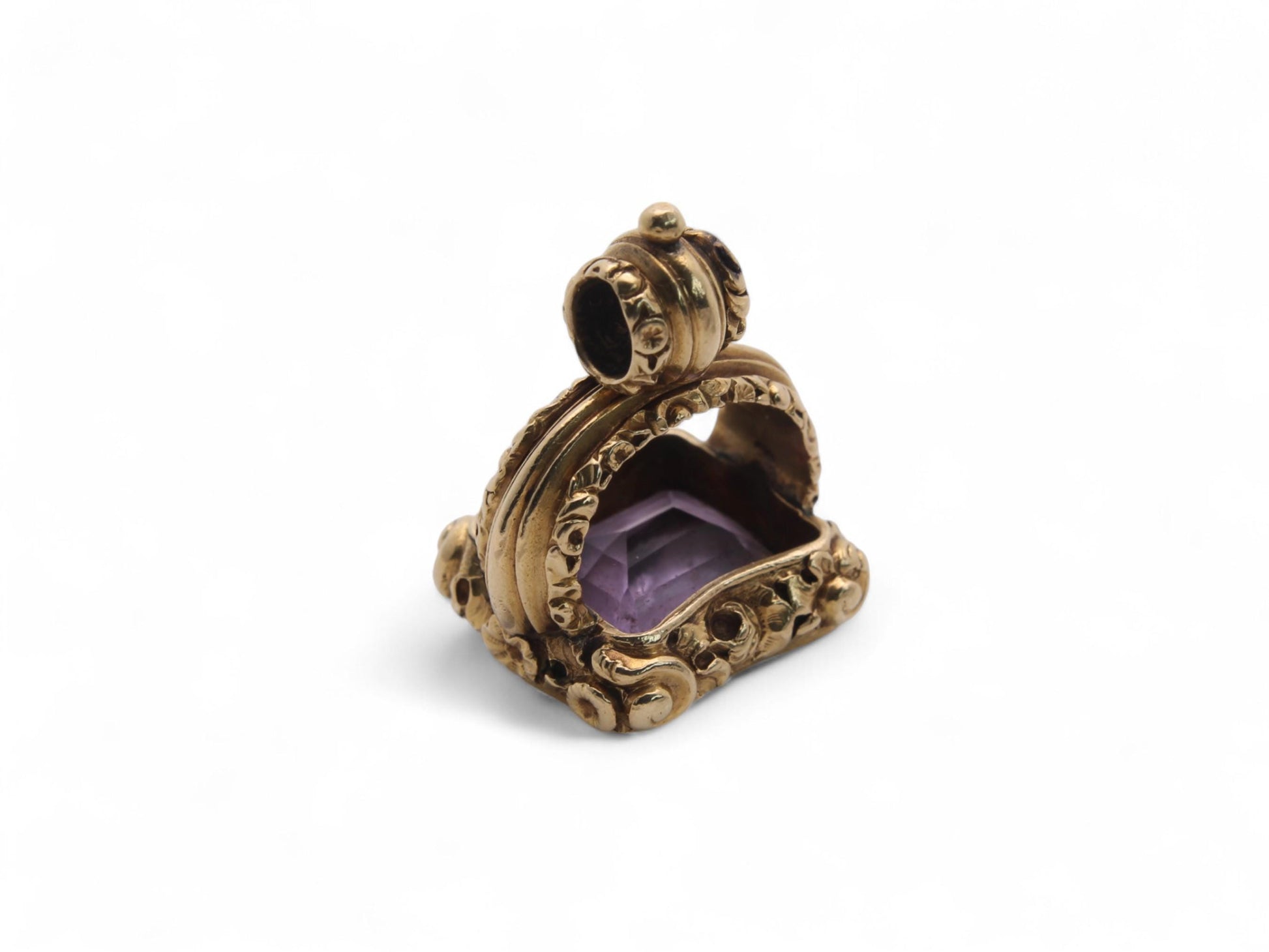 Antique 15ct Gold Chased Amethyst Pendant Seal