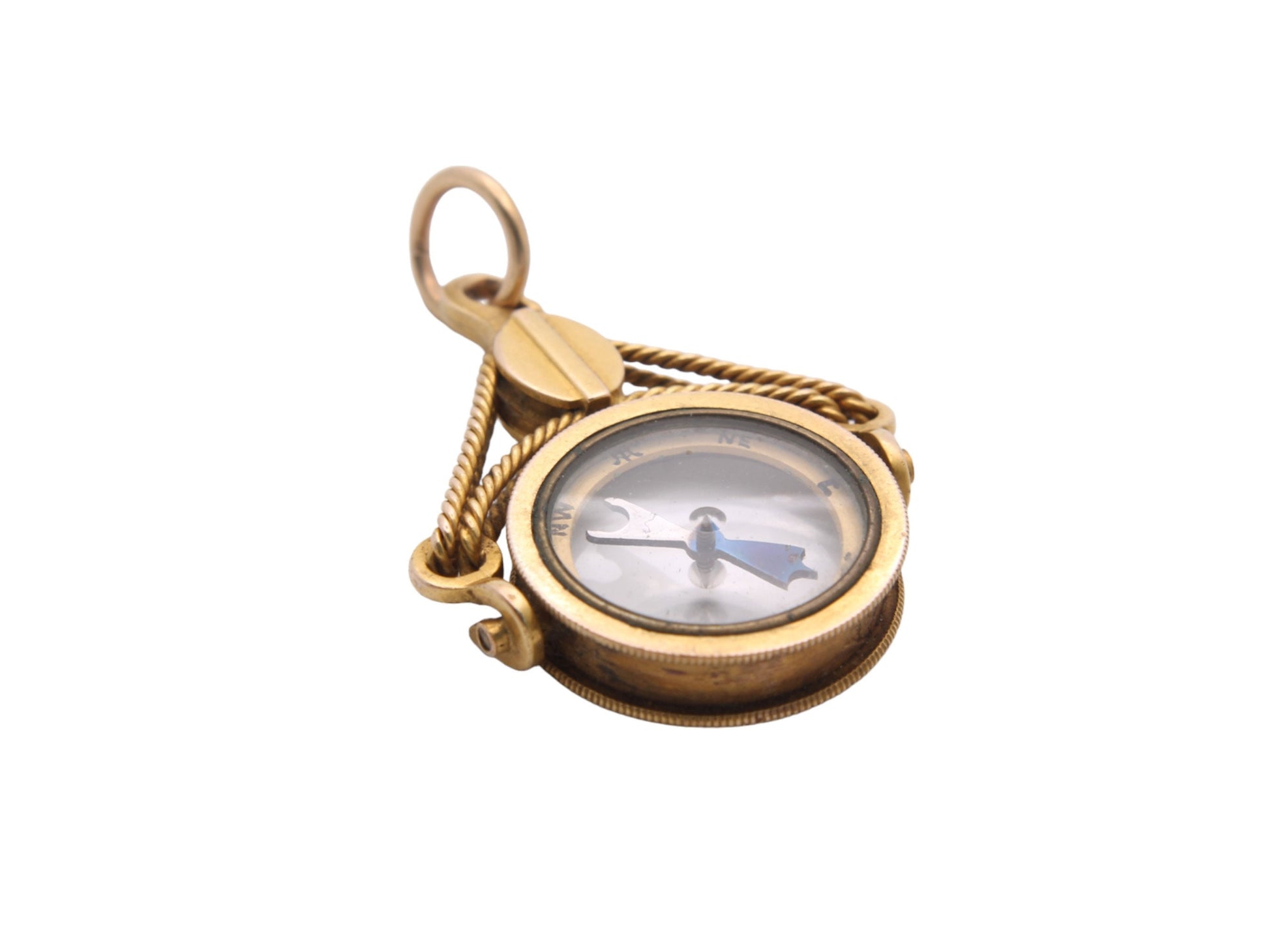 A truly exceptional piece of antique jewellery - this divine compass pendant is exquisitely crafted in 15ct gold. The circular compass casing features a clear face with cardinal points and its original blue steel needle, which is fully functional.