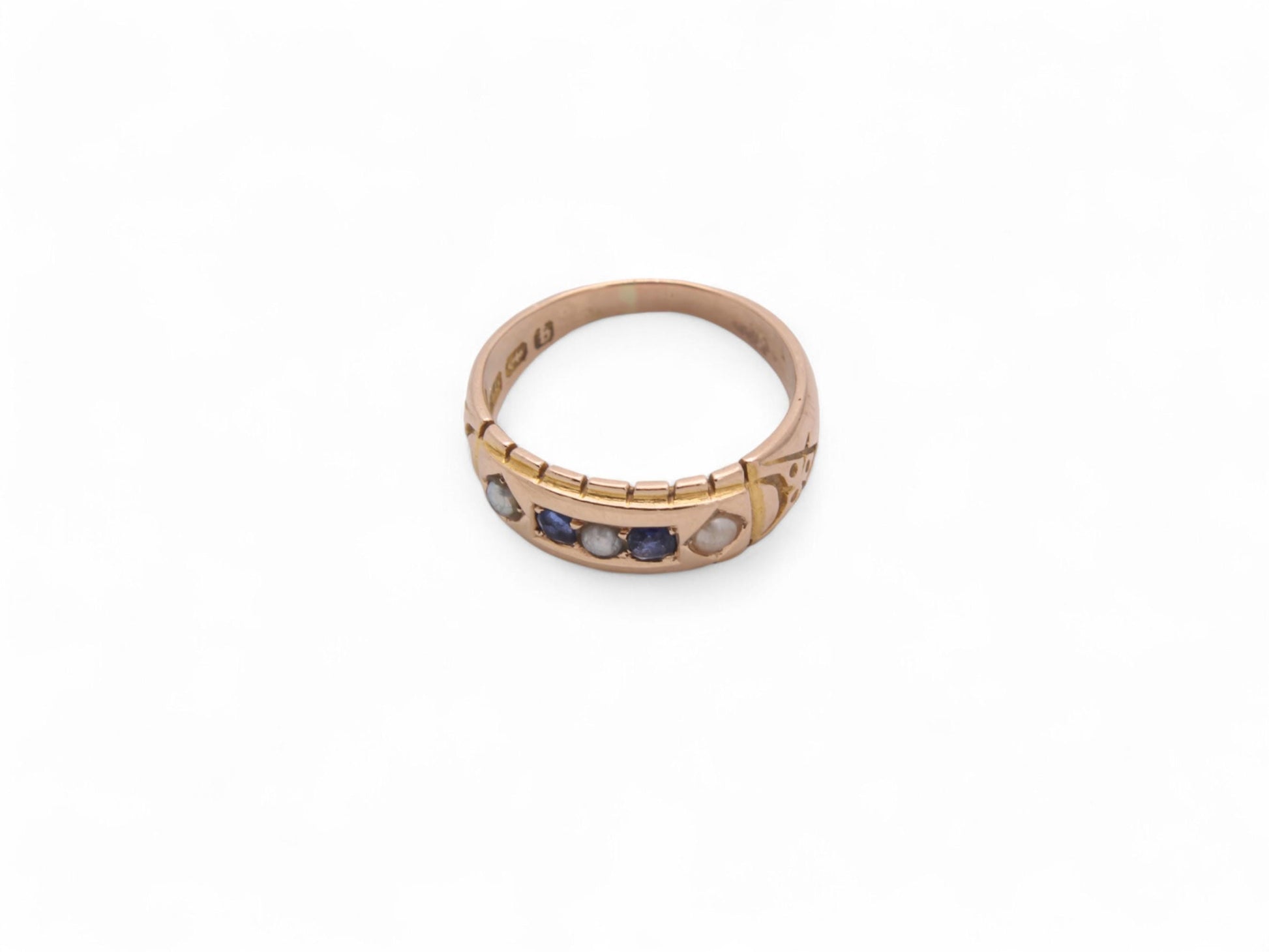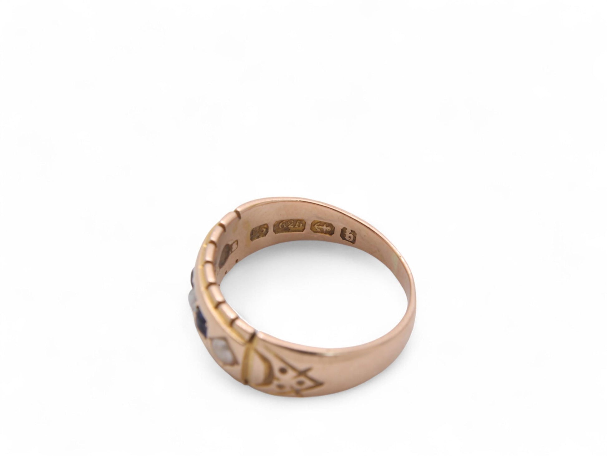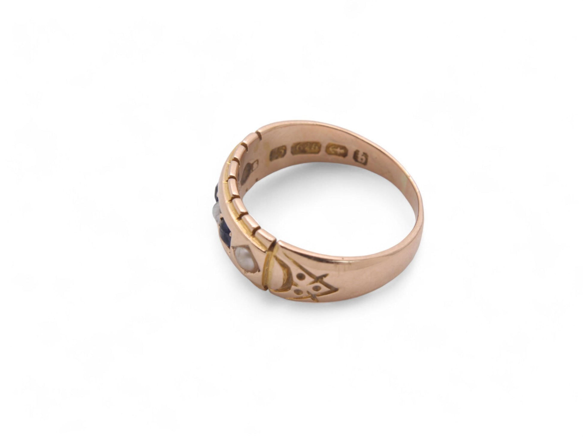 Antique 15ct Gold Sapphire Pearl Gypsy Ring, 1882