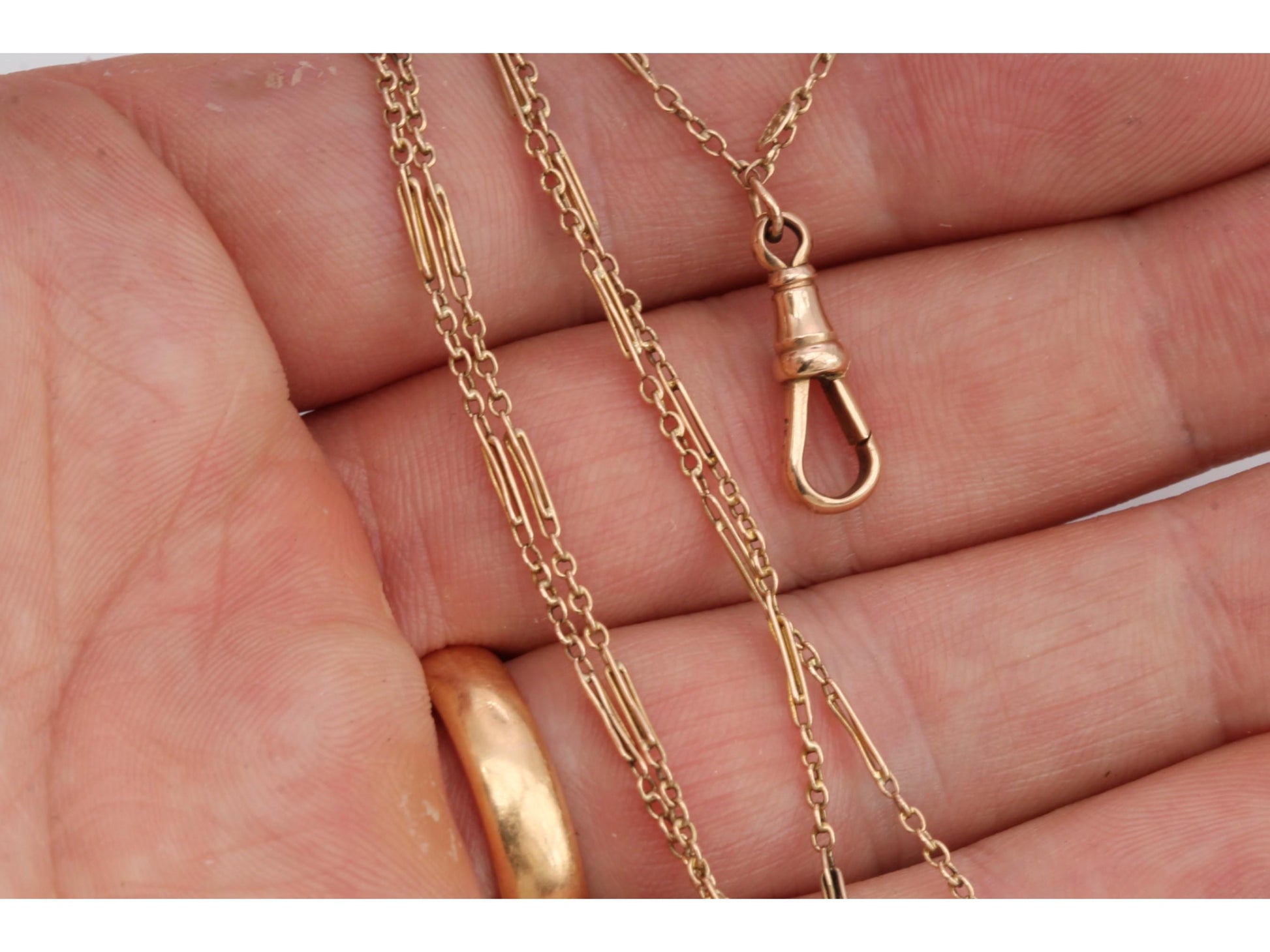 Antique 15ct Gold Trombone Link Long Guard, 53.5"