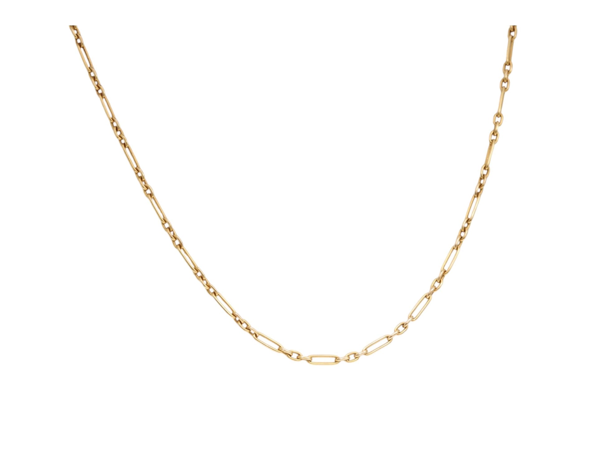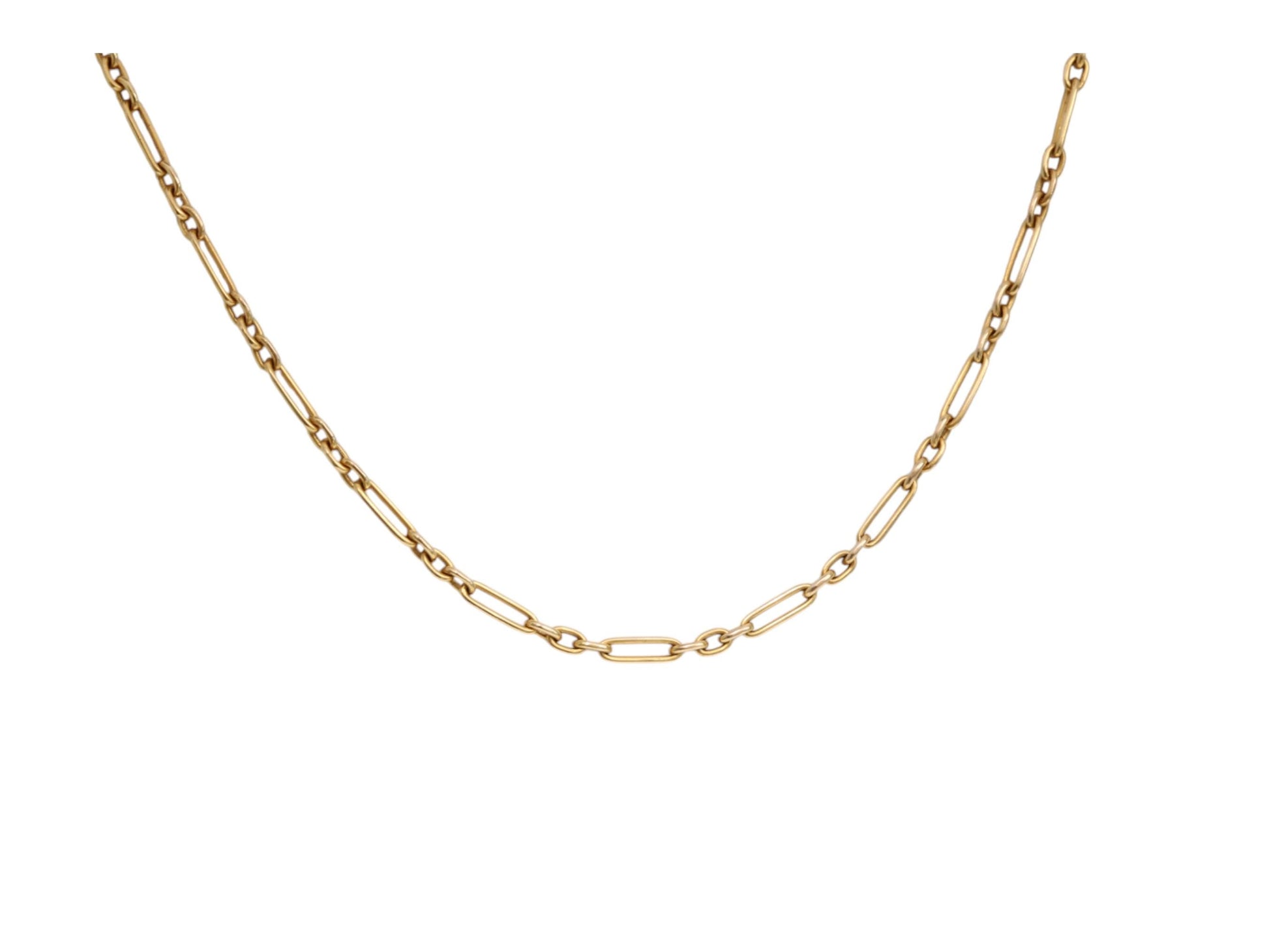Antique 15ct Yellow Gold Trombone Link Necklace, 15"