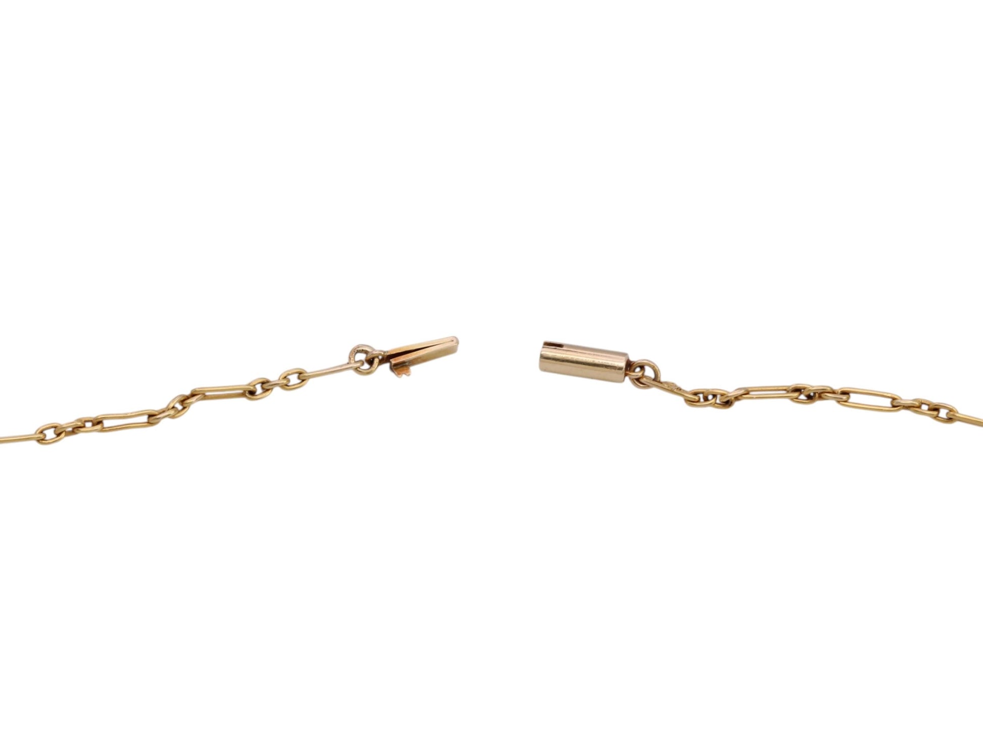 A refined and elegant antique necklace crafted in rich 15ct yellow gold, dating to the Edwardian era. This delightful piece features trombone links, stylish and timeless in design, offering both understated charm and antique character.