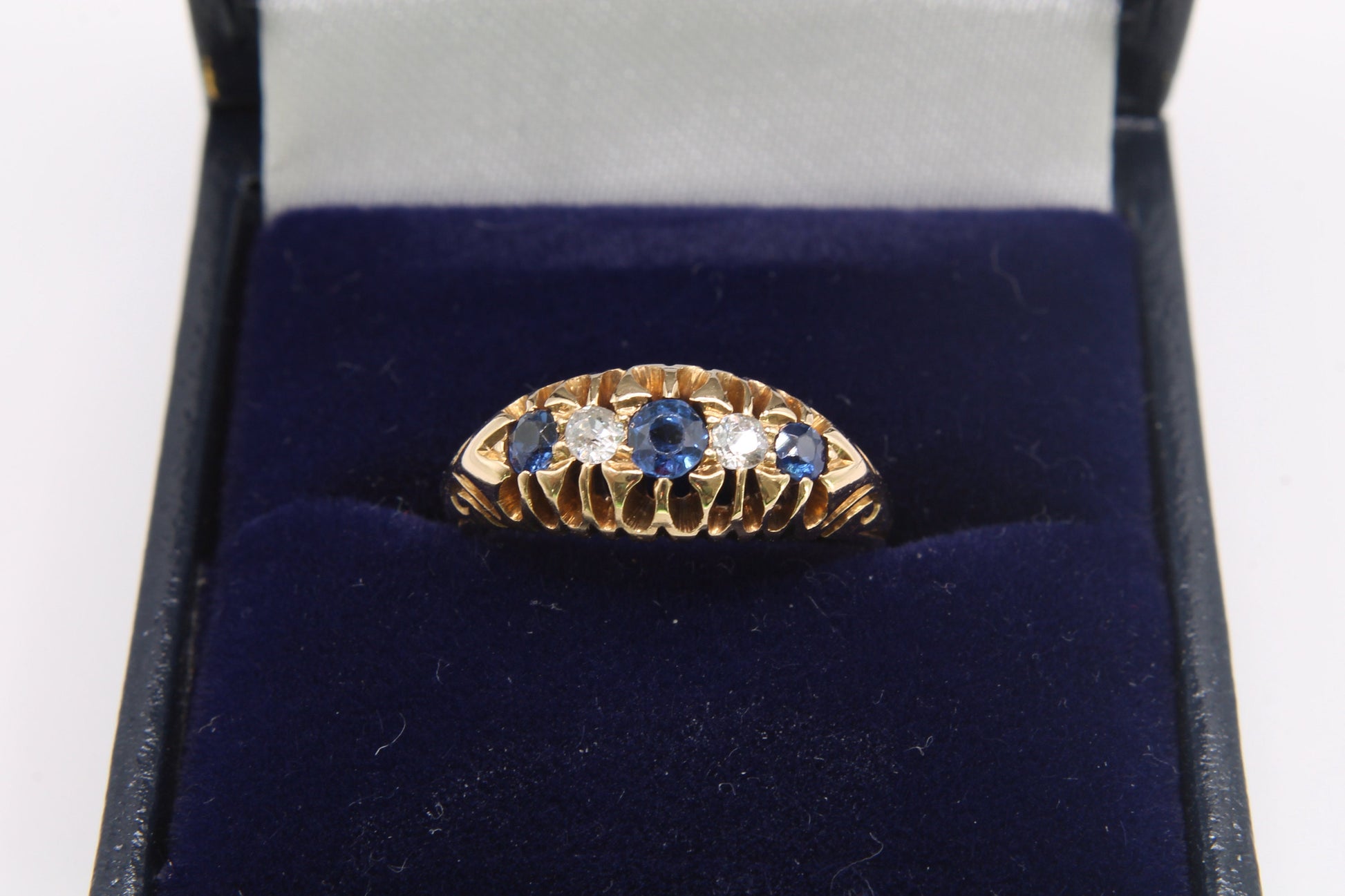 Antique 18ct Gold Diamond And Sapphire Ring - 1903
