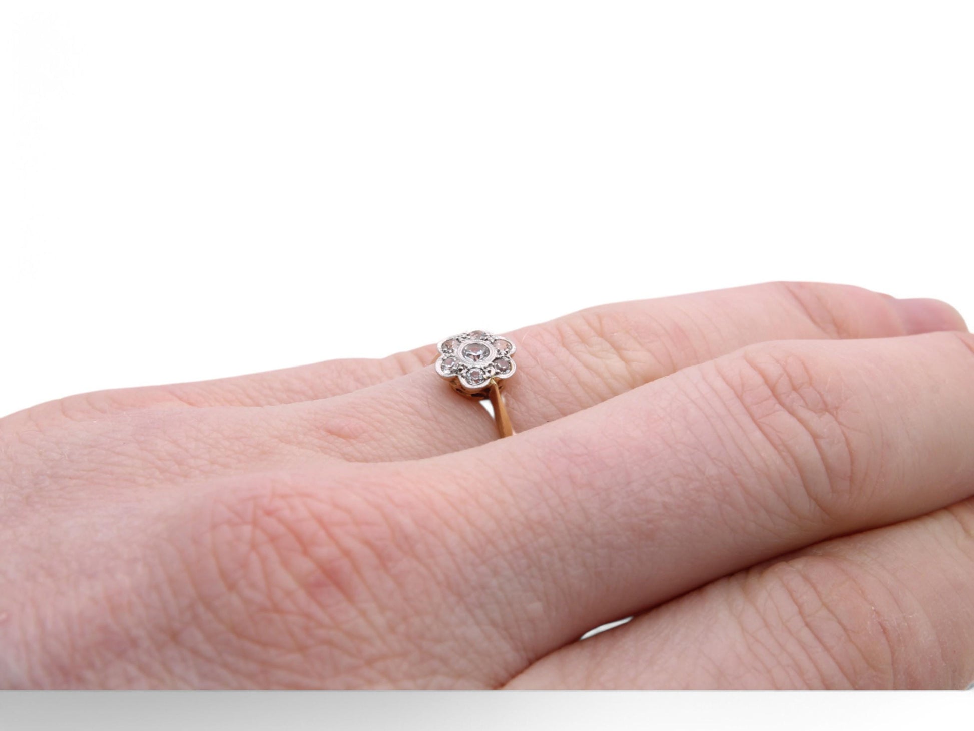 Antique 18ct Gold & Platinum Diamond Cluster Daisy Ring