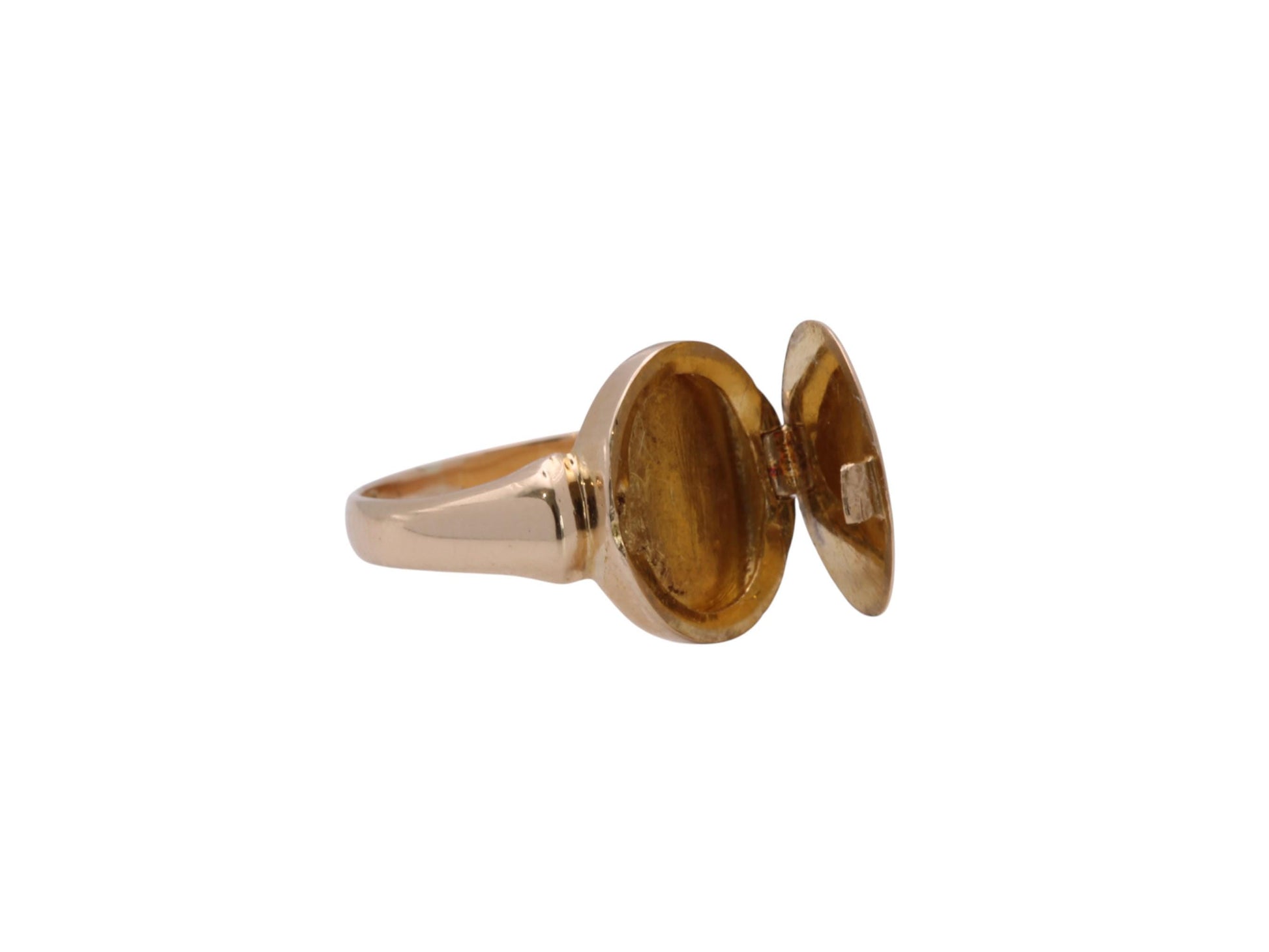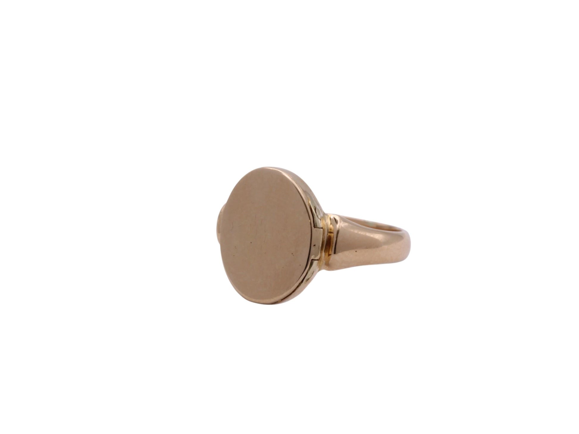Antique 18ct Gold Poison Locket Signet Ring, Hinged Compartment, Murrle Bennet