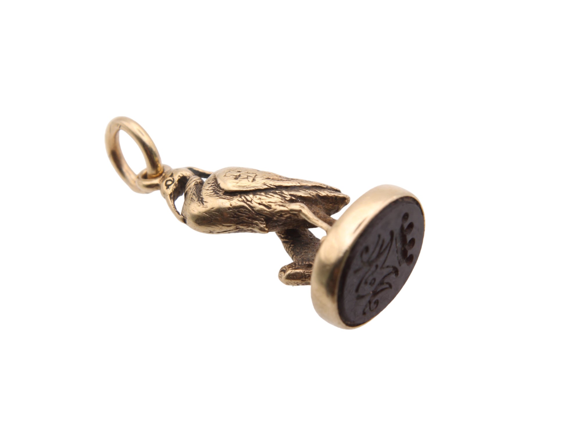Antique 18ct Gold Stork Intaglio Carnelian Pendant Seal