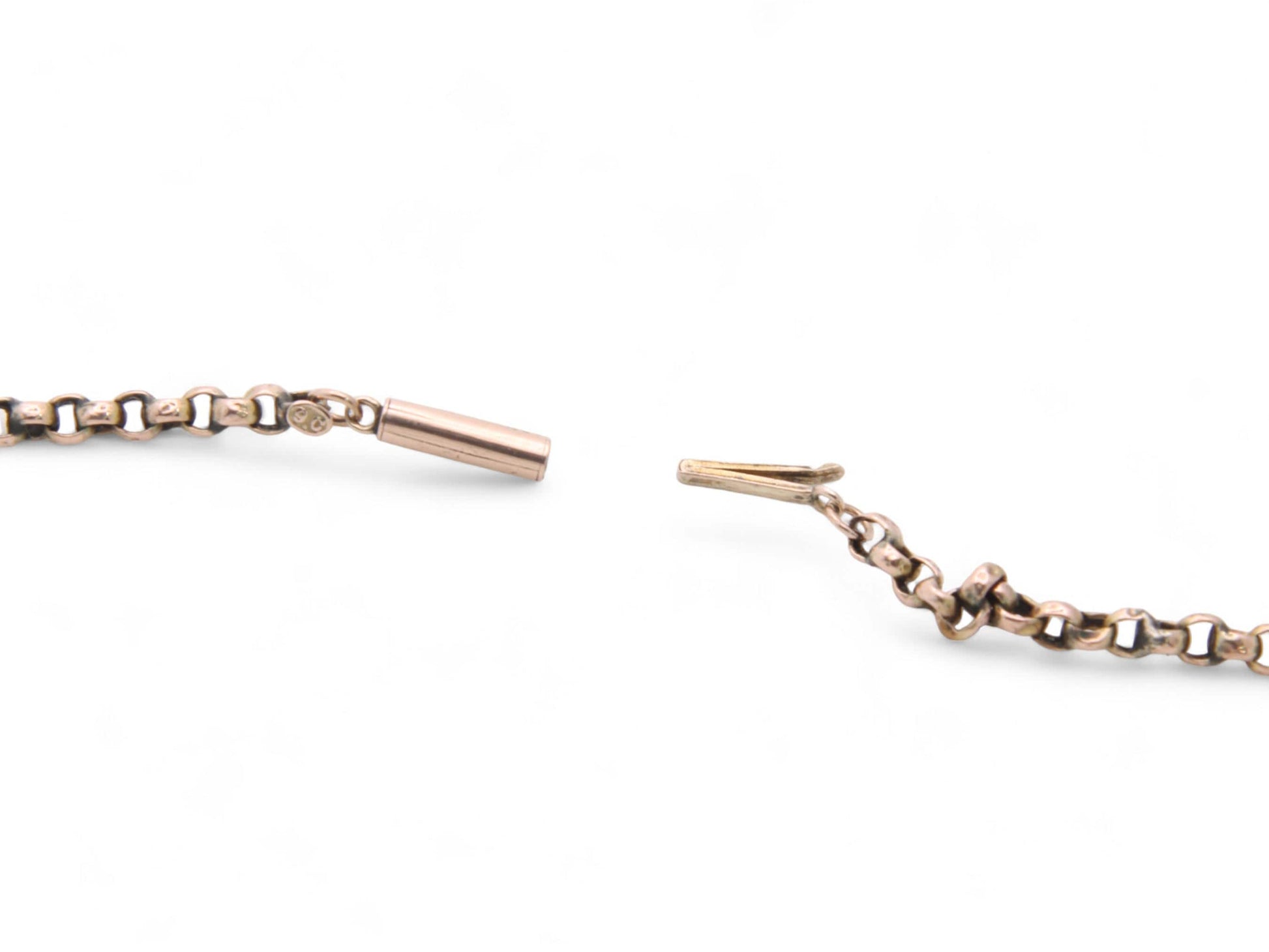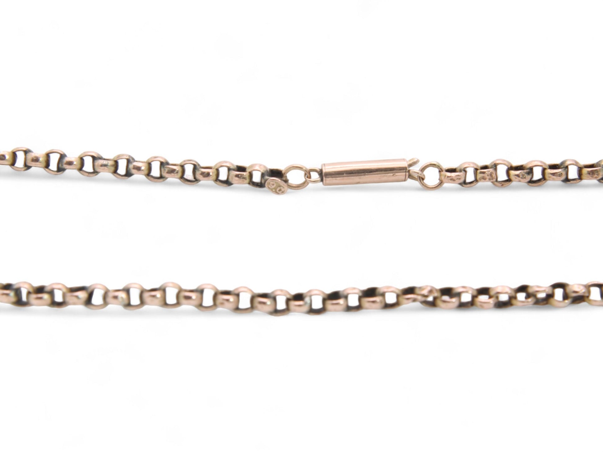 An exquisite antique Edwardian 9ct rose Gold belcher link necklace. Measuring 17 inches in length, it's the perfect addition to your jewellery collection, effortlessly complementing any outfit with its beauty. Crafted from blushed 9ct Gold, each link exudes warmth and sophistication.
