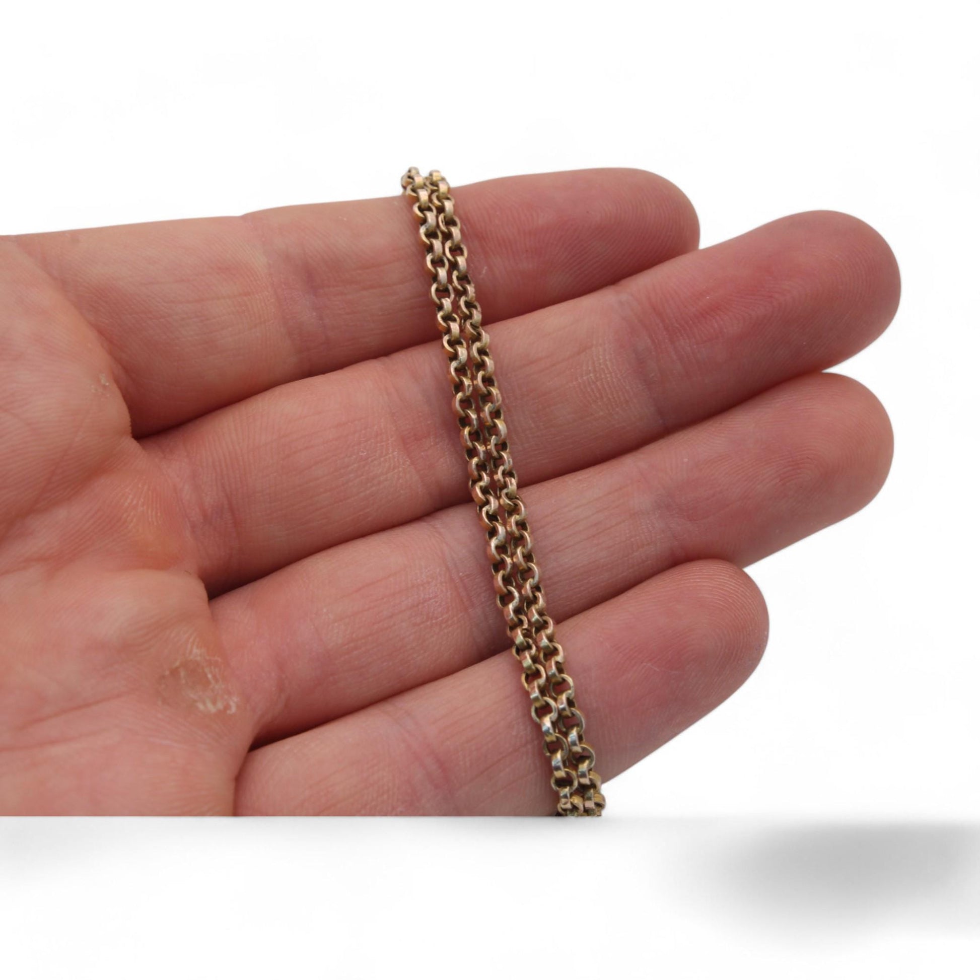 This antique 9ct rose gold necklace is a timeless treasure, crafted with elegant belcher links that exude classic sophistication. Measuring 51.5cm in length, it sits beautifully and comfortably, making it perfect for everyday wear or special occasions.