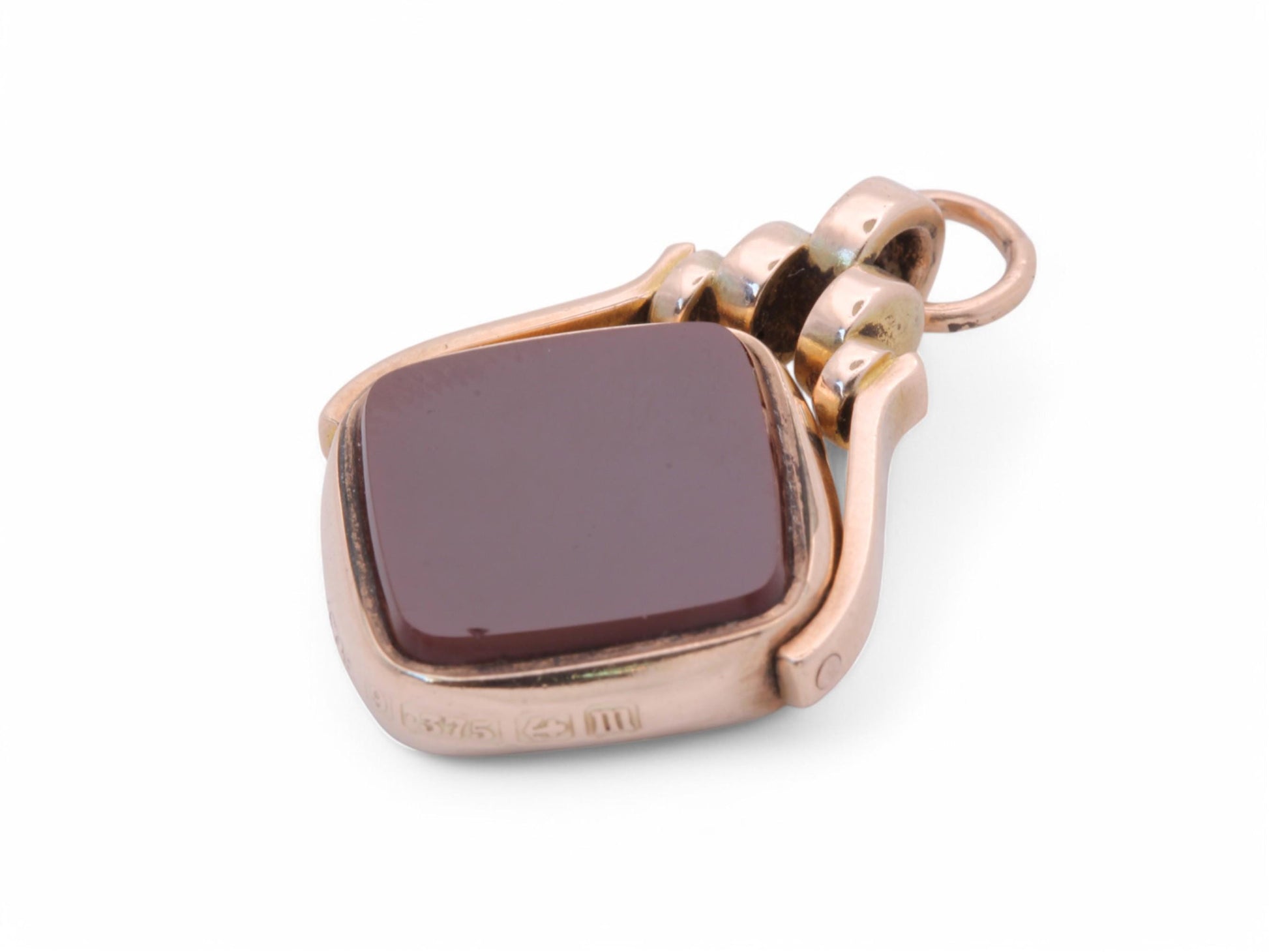 Antique 9ct Gold Bloodstone & Carnelian Spinner Pendant